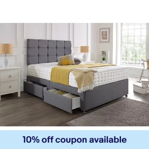 • LUXURY GREY FABRIC DIVAN BED SET WITH MATTRESS & HEADBOARD