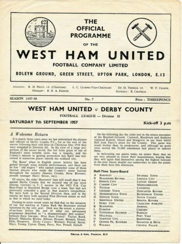 Away Teams C-E Second Division Football League Fixture Programmes (1950-1958)