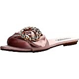 Cape Robbin Sadie-3 Pink Satin Rhinestone Brooch Open Toe Slide Flat Sandal