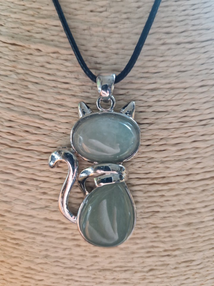 Aventurine Gemstone Cat Necklace Choice Of Silver Plated Chain Or Black...