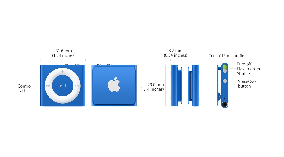 Weighing less than half an ounce, the wafer-thin Apple iPod shuffle 4th Generation lets you take your music anywhere. Slide your finger over the ring control and press the play button in the center. With no screen, the iPod shuffle 2GB mp3 player relies on a simple physical interface to provide the music you want when you want it. This is not a full-function media player, rather, it's a dedicated music player that does one thing and does it very well. You cannot watch a movie on an iPod shuffle, but you can certainly enjoy the soundtrack. Plug in your headphones and start listening. With no screen to drive, you have plenty of battery life.