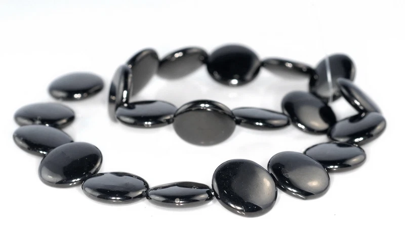 20MM BLACK JET GEMSTONE ORGANIC FLAT ROUND CIRCLE LOOSE BEADS 15.5inch