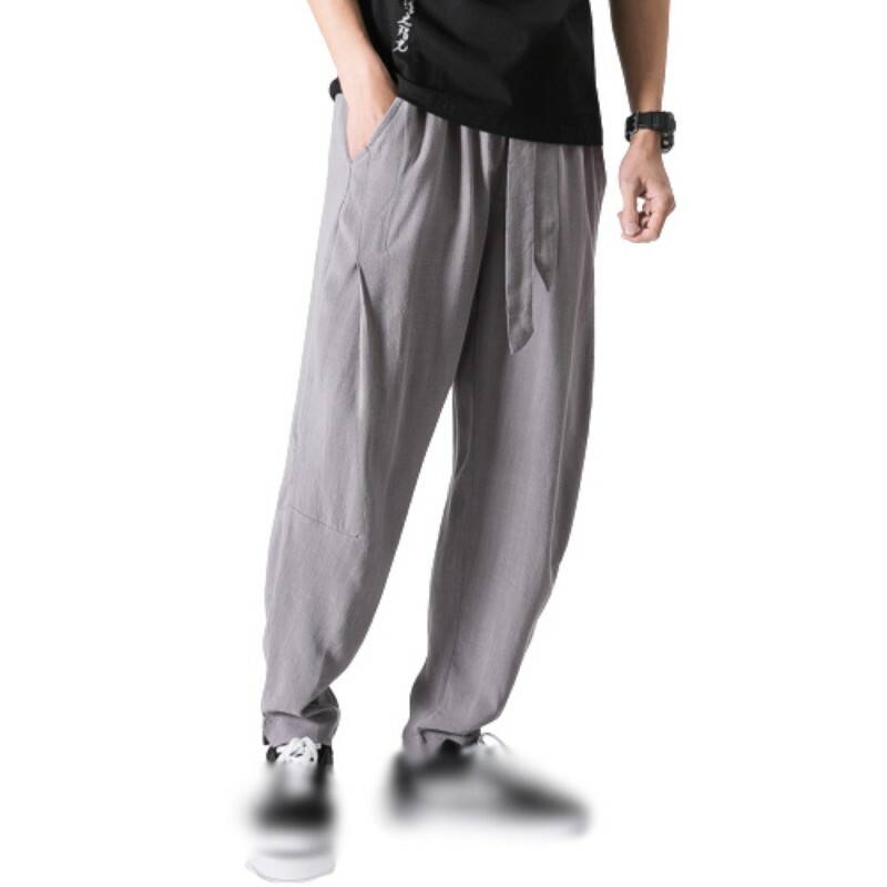 Men's Plain Cotton Linen Casual Loose Fit Chinese style Sports Harem pants New @