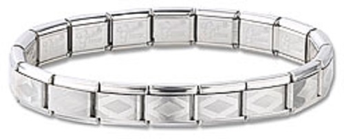 Italian Charm Diamond Etched Bracelet Stainless Steel Silver 9 mm Modular Link