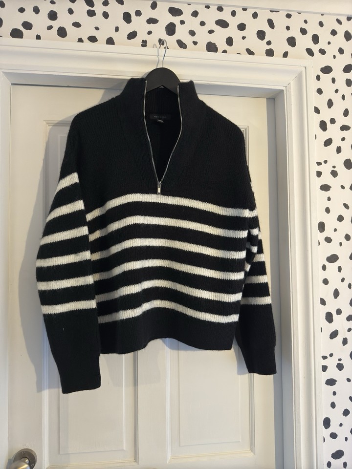 New Look Funnel Zip Neck Striped Jumper Size M 12-14