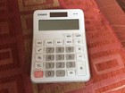 The Casio MX-8B is a dual-power desk calculator with a wide 8-digit display. It features large, easy-to-read buttons including number, positive/negative and percentage keys, standard memory and memory recall functions, and an extra-large +/addition key. The calculator is both battery and solar powered and weighs just 300 grams. It features a sleek, white design and is compact enough to store easily or carry wherever you go.