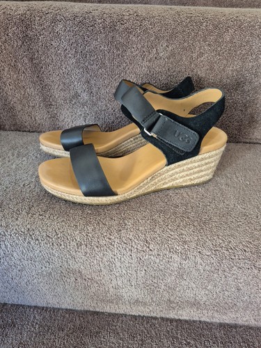 - UGG Women’s Wedge Heels Jolina Espadrille Black Leather 4" Sandal Size UK 5.5Pre-owned · Size UK 5.5£24.99or Best Offer+£2.99 delivery8% off with coupon. Max £50 offClick & Collect