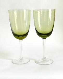 2 Mason Moretti Murano/ Kost Boda? Wine 8'' Tall Crystal Glasses Green Swirl