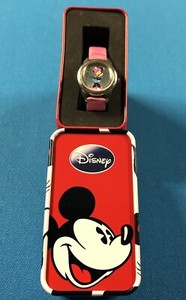 Disney Minnie Mouse Women's Watch Red Faux Leather Wristband Storage Tin C3
