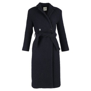 Sandro Paris Belted Double-Breasted Coat in Navy Blue Wool