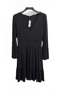 NEW Loft Black V-Neck Long Sleeve Tiered Dress Women's Size 8 A-line Jersey Knit