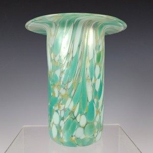 Midsummer Glassmakers Green Iridescent Spatter Glass British Vase