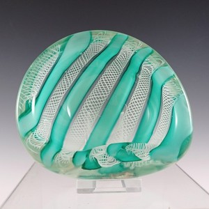 Archimede Seguso Murano Zanfirico Turquoise & White Glass Bowl