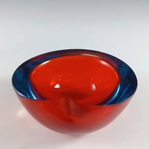 Murano Red & Blue Sommerso Glass Vintage Kidney Geode Bowl