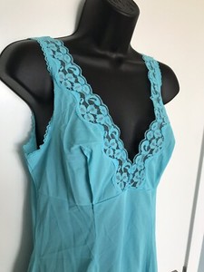 Vintage 70s Nylon Silky Sheer Blue Lace Nightgown Chemise Lingerie Made in Italy