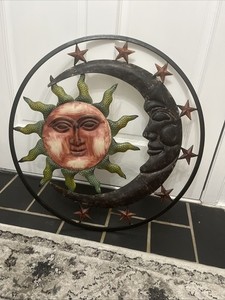 ❤️VTG 80’s CELESTIAL MOON STARS & SUN WALL HANGING 26” METAL ORIGINAL