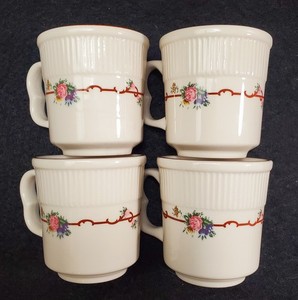 SHENANGO CHINA New Castle PA. ANGELIQUE RESTAURANT WARE 4 HTF COFFEE MUGS
