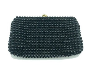 Vintage Grandee Bead Purse Bag with Kiss Lock Black 1940's Nice ! (B489)