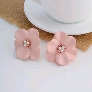 Women's Pink Flower Pearl Stud Earrings Boho Retro Statement Jewellery Fashion