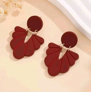 Womens Acrylic Burgundy Stud Geo Drop Dangle Earrings Boho Retro Jewellery Uk