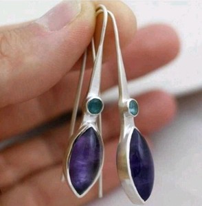Women's Boho Silver Plated Teardrop Gemstones Geo Dangle Earrings Jewellery