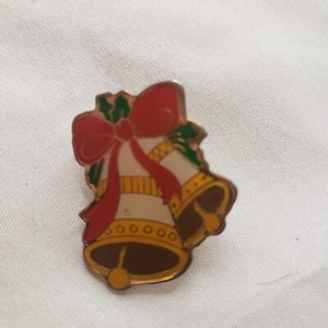 Christmas Bells Red Ribbon Holly Vintage Lapel Pin Brooch