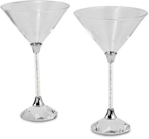 Set of 2 Martini Glasses w/ Crystal-filled Stems