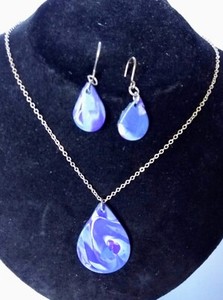 Ooak handmade polymer clay teardrop pendant &earring set in purples