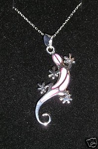 STIRLING SILVER PINK MOTHER OF PEARL GECKO PENDANT