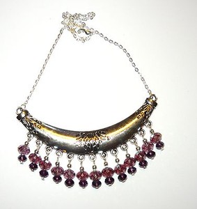 HANDCRAFTED UNIQUE STATEMENT COLLAR NECKLACE WITH PURPLE DROPS