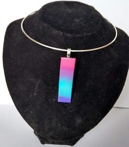 Ooak handmade polymer clay pendant in pink turquoise and bright blue ombre