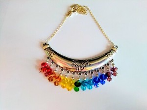HANDCRAFTED UNIQUE STATEMENT COLLAR NECKLACE WITH RAINBOW DROPS