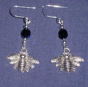 CUTE TIBETAN SILVER BUMBLE BEE & BLACK CRYSTAL EARRINGS