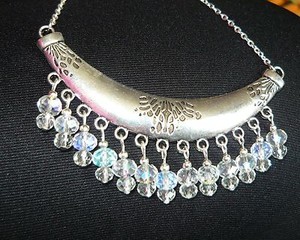 HANDCRAFTED UNIQUE STATEMENT COLLAR NECKLACE WITH CRYSTAL DROPS