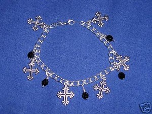 GOTHIC BLACK DROP AND TIBETAN SILVER CROSS BRACELET