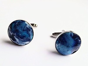 Ooak handcrafted blues and white swirly Polymer Clay Cufflinks