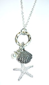 SEASHORE- tibetan silver clamshell, starfish and freshwater pearl necklace 18"