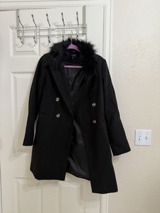 Topshop Fur Collar Black Long Coat