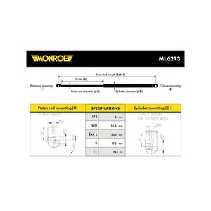Genuine Monroe Rear Boot Spring Gas Strut (Single) - ML6213