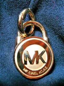 EUC Michael Kors MK Larger Bright Yellow Gold Tone Round Lock Ring Pendant