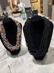 2 Vintage Multicolor Sea Bead & Black Brad Collar Necklace 18” Each