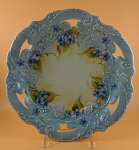 Hand Painted Decorative Bon Bon Sweets Plate - Blue w/Flowers Signed Ellen Noble