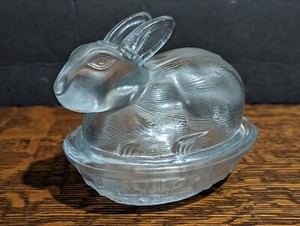 Vintage Clear Glass Nesting Bunny Rabbit Covered Candy Dish - Easter Springtime