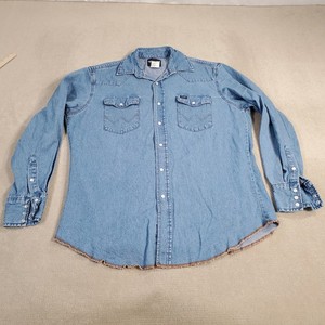 Wrangler Denim Pearl Snap Shirt Mens Large Blue Work Western Cowboy Logo 70127SW
