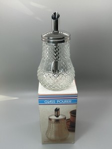 Vtg Sugar Dispenser Diamond Point Cut Glass Stainless Steel Top Pour Spout Boxed