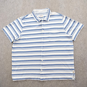 Todd Snyder Shirt Mens Extra Large Blue White Knit Striped Button Up Short Sleev