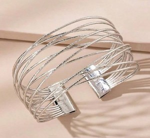 Silver 1pc Multi-Layer Open Cuff Bracelet