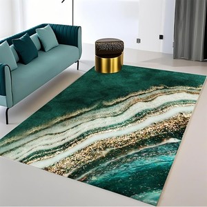 Modern Emerald Green Marble Area Rug 4X6ft Contemporary Abstract Swirl Waves ...