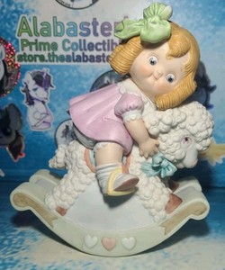 Dolly Dingle Porcelain Bisque Figurine Global Art Child on Rocking Lamb 1986