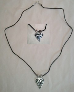 Necklace Heart Pendant on Black Cord Handmade - Set 33